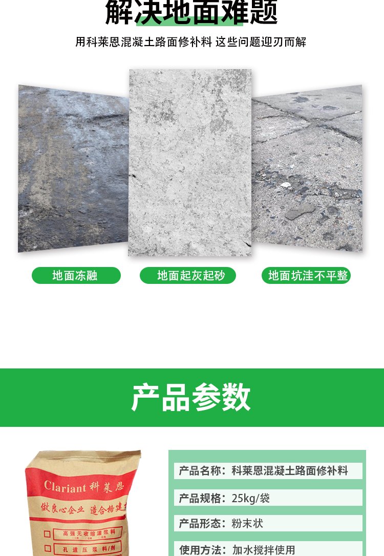 胶粘 > 表面处理剂 > 混凝土修补剂 > 科莱恩 水泥路面高强修补料 25kg