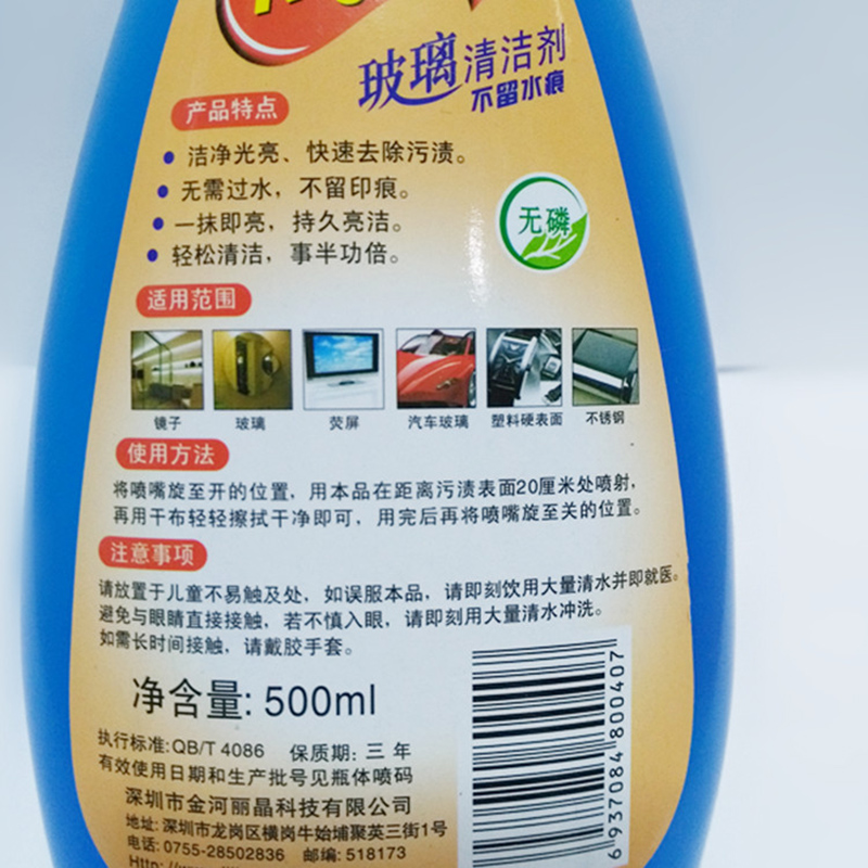 清洁 > 工业擦拭 > 玻璃清洁剂 > 丽晶 平头玻璃水 24支/箱 500ml