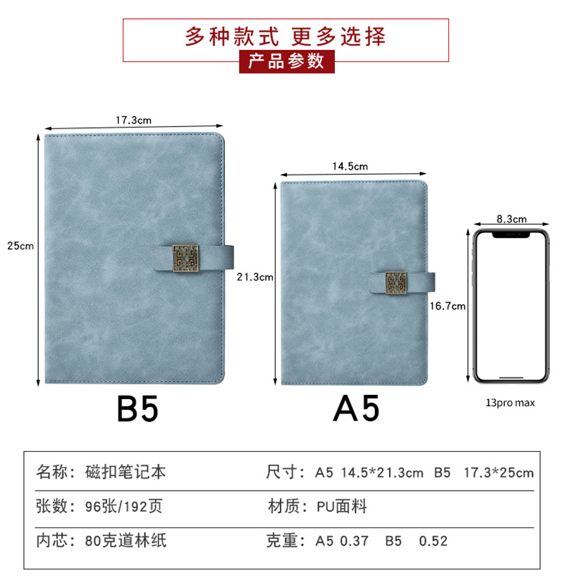 聚创 复古磁扣加厚笔记本 A5/96张 JC-210901
