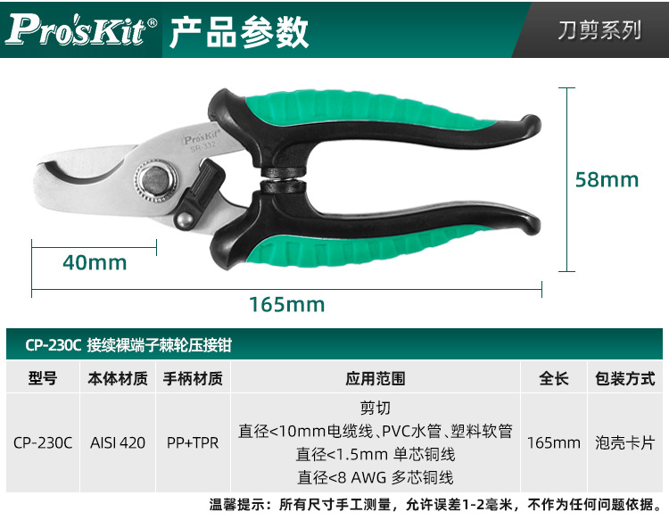 工具 > 剪切工具 > 电缆剪 > 宝工 电缆弯口剪 165mm SR-332
