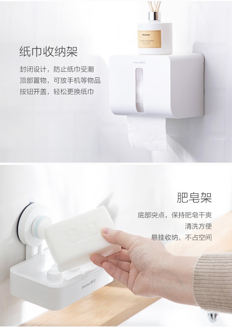 • 茶花 卡乐免打孔吸壁纸巾收纳架 255004