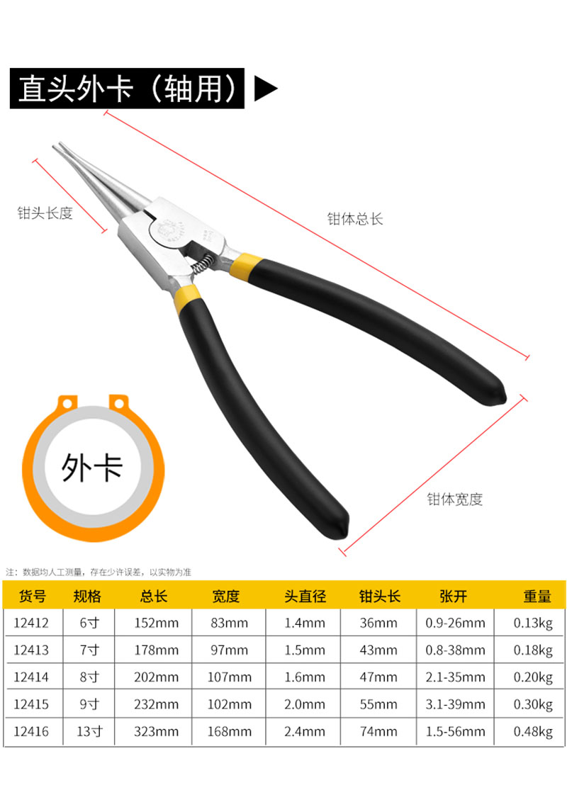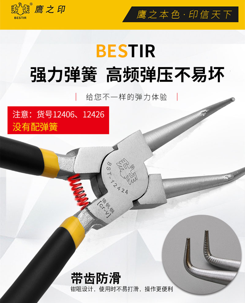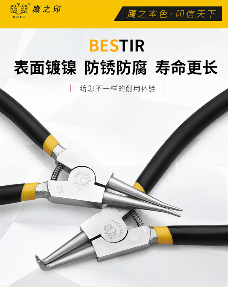 工具 > 钳/夹 > 卡簧钳 > 鹰之印 13″高档铬钒钢轴直卡环钳 BST-12416