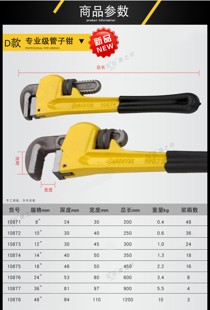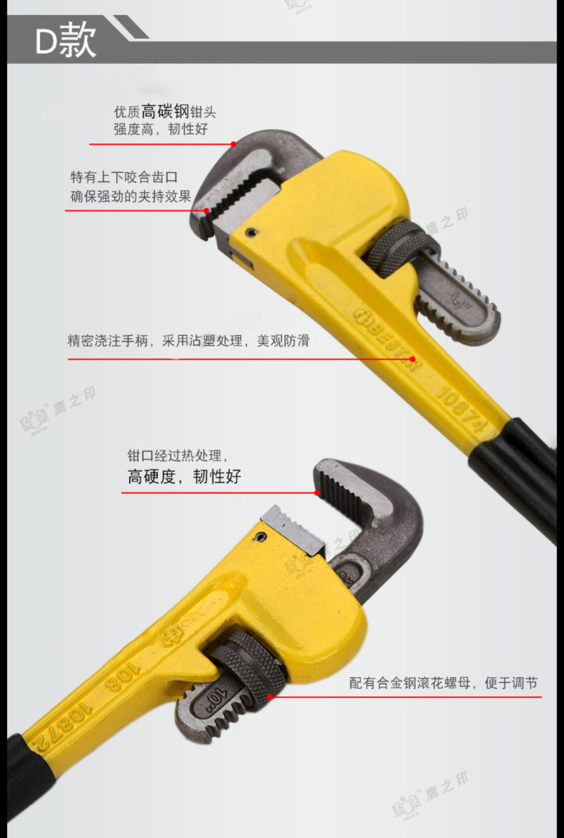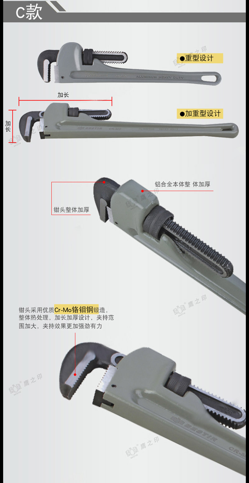 • 鹰之印 8″(200mm)专业级管子钳(6/48) BST-10871
