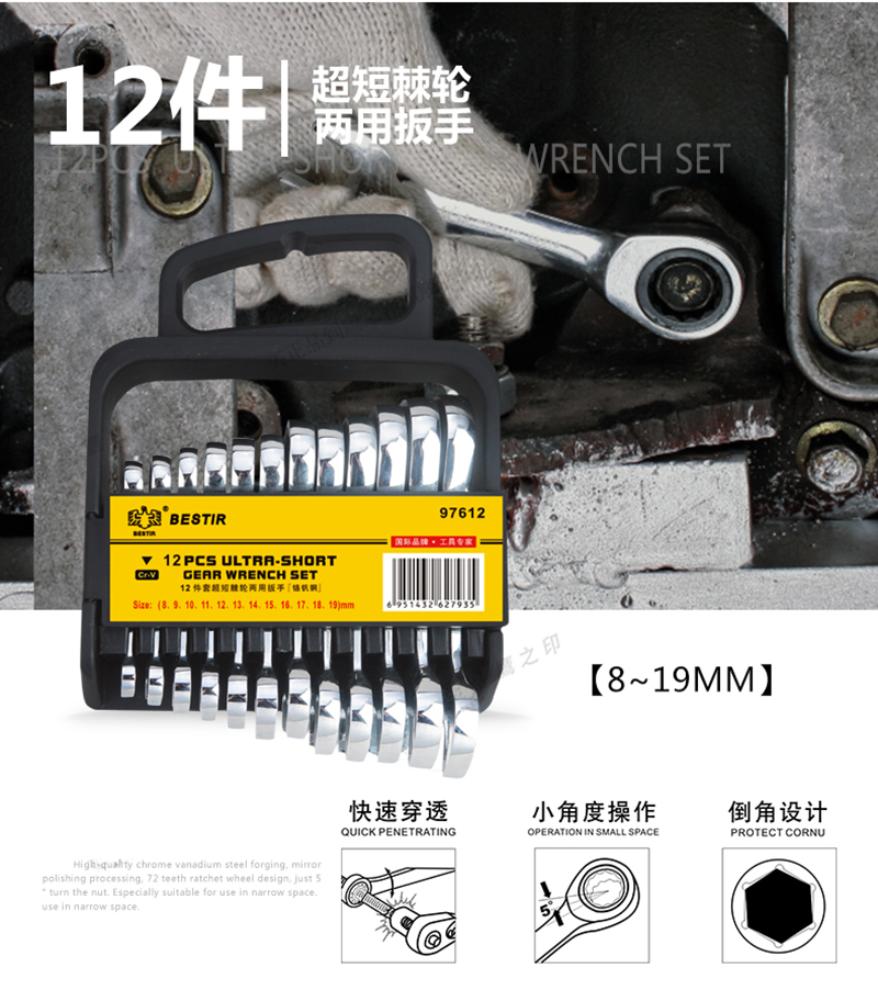 • 鹰之印 17mm超短棘轮两用扳手 BST-53317