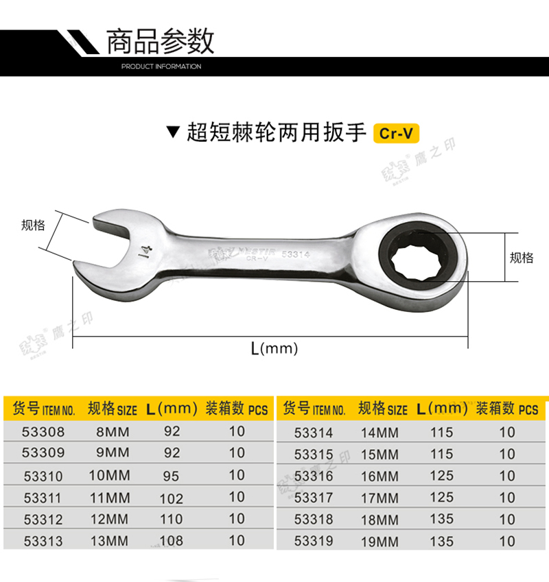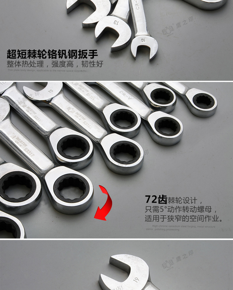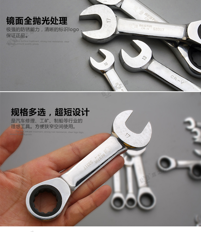 鹰之印 17mm超短棘轮两用扳手 BST-53317