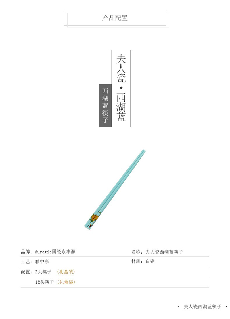 • 夫人瓷 西湖蓝陶瓷筷 911012901001 6双