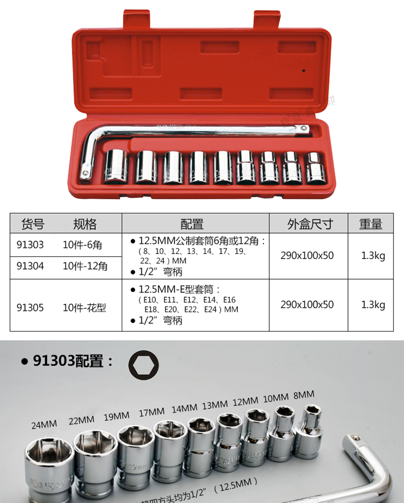 工具 > 扳手/手动套筒 > 套筒套装 > 鹰之印 10件镜面六角套筒组套 BST-91303