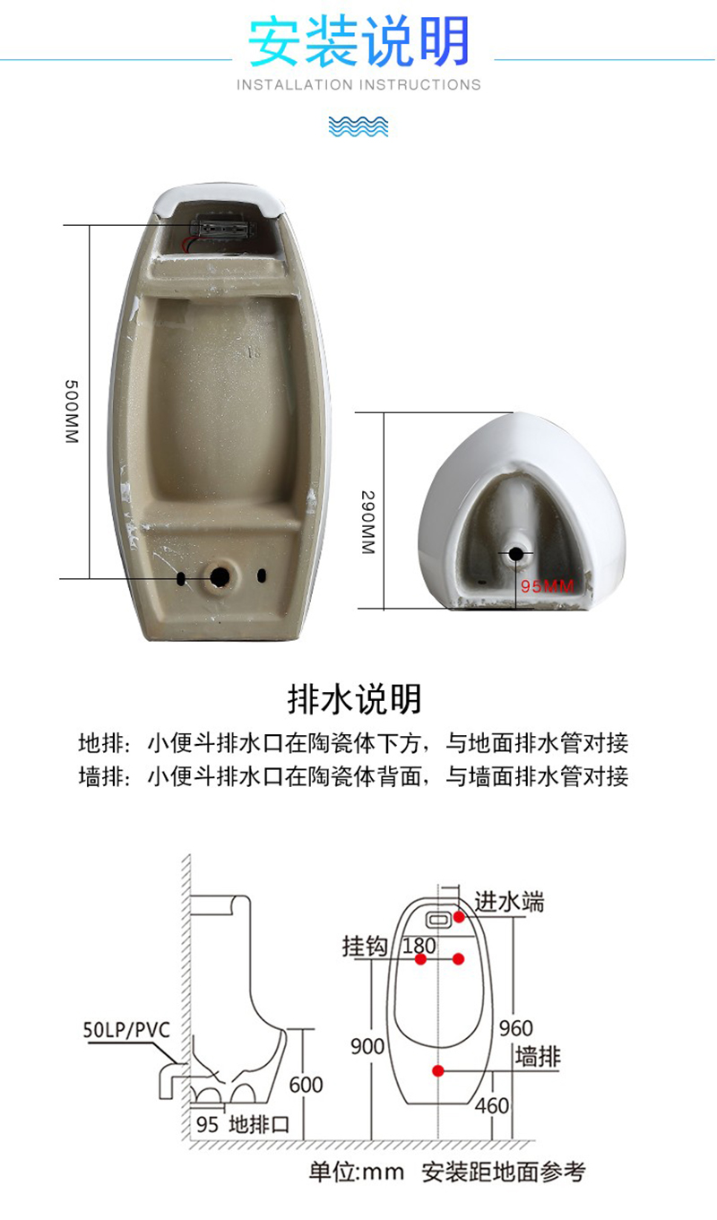 管阀 > 卫浴 > 配件 > 蓓斯顿 挂式感应式小便器 小便器 300*310*615mm 交流型