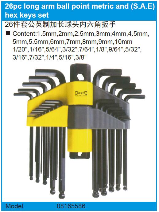 26件套公英制加长球头内六角扳手