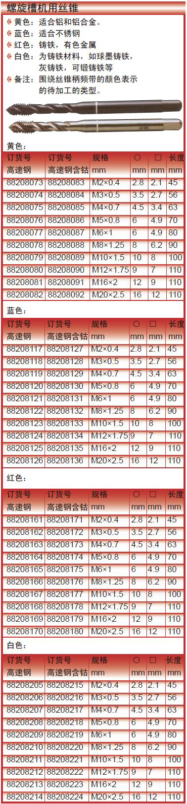 螺旋槽机用丝锥