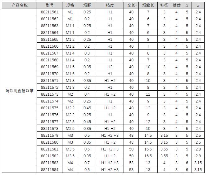 刀具 > 孔加工刀具 > 螺纹刀具 > 铸铁用直槽丝锥