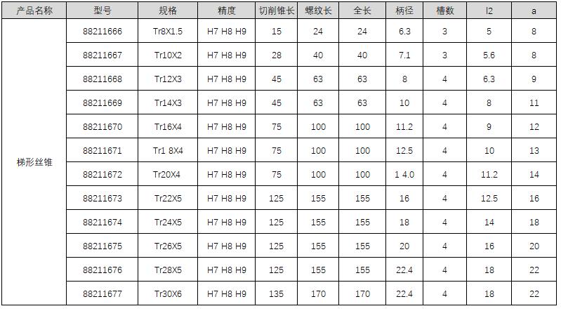 刀具 > 孔加工刀具 > 螺纹刀具 > 梯形丝锥