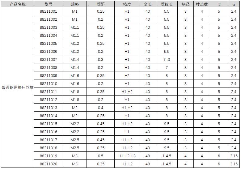 • 普通钢用挤压丝锥