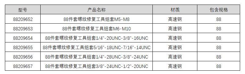 • 88件套螺纹修复工具组套1/4"-20UNC-3/8"-16UNC