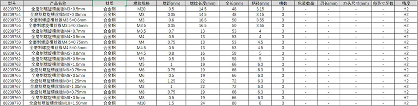 • 全磨制螺旋槽丝锥M5×0.8mm