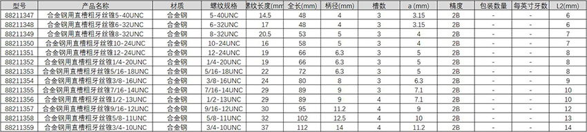 • 合金钢用直槽粗牙丝锥7/16-14UNC