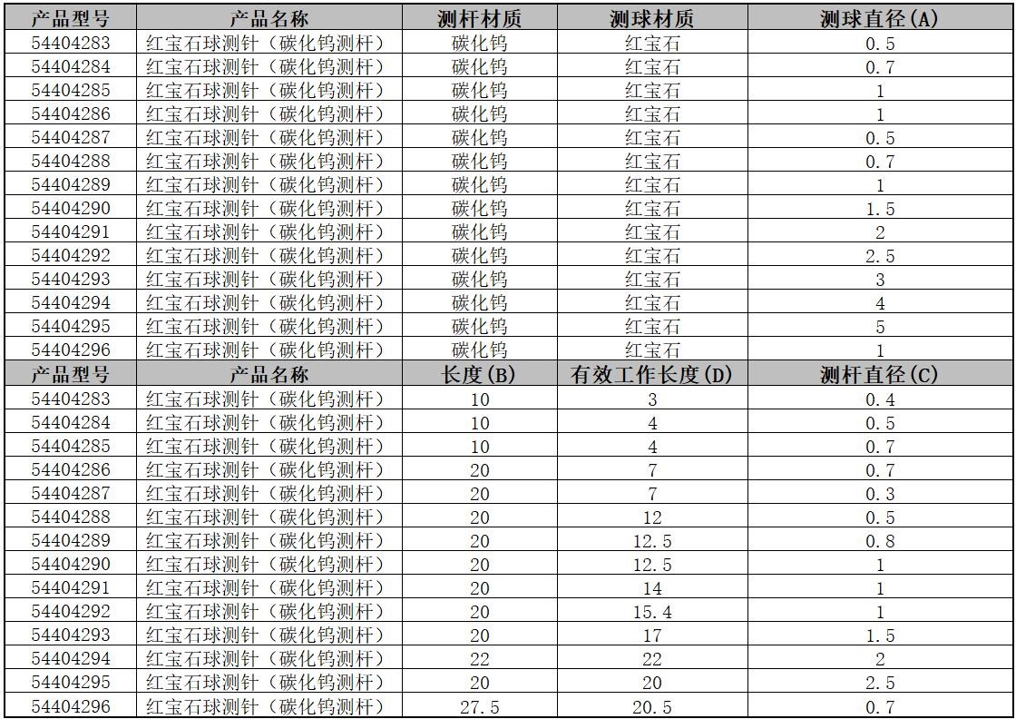 量具 > 测量量具辅件 > 量具附件 > 红宝石球测针(碳化钨测杆)
