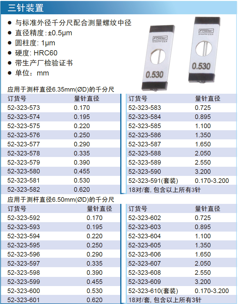 量具 > 测量量具辅件 > 量具附件 > 3针装置