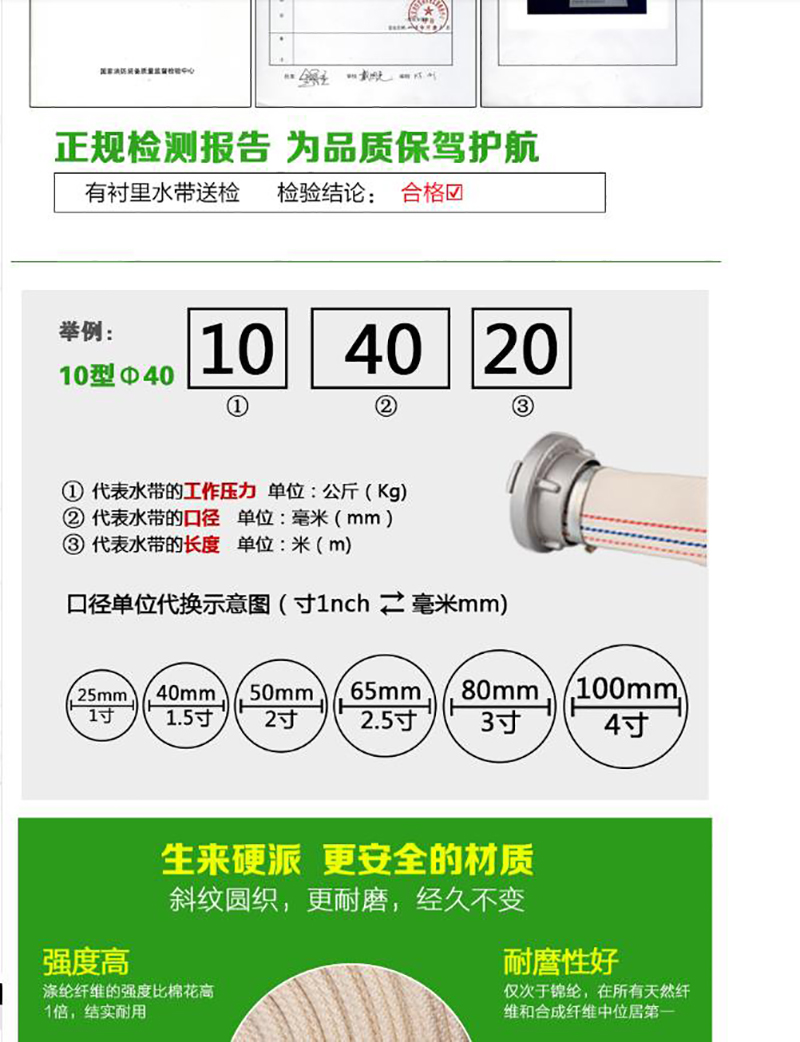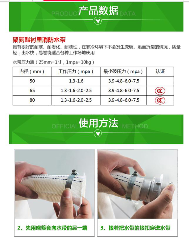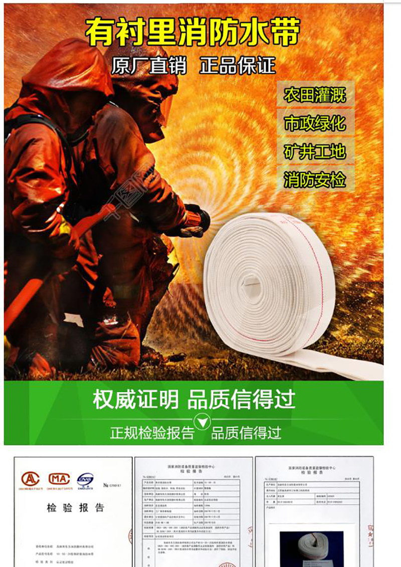 • 消防农用水带3对平宽12CM (80mm) 20米送接头