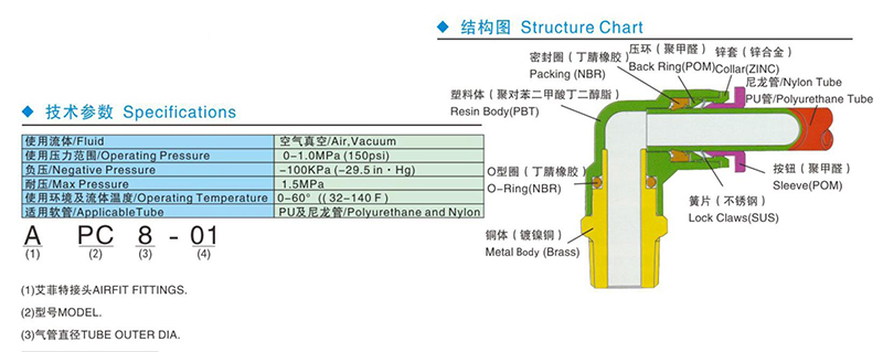 • 螺纹直通快插式气管接头/AT91-100-4