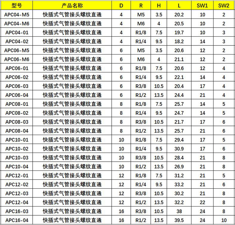 管阀 > 管件 > 直通接头 > 螺纹直通快插式气管接头/AT91-100-4