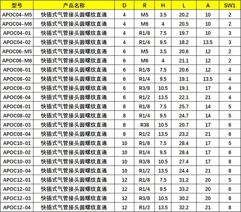 管阀 > 管件 > 直通接头 > 圆螺纹直通快插式气管接头/AT91-100-45