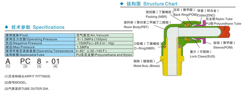 • 圆螺纹直通快插式气管接头/AT91-100-45