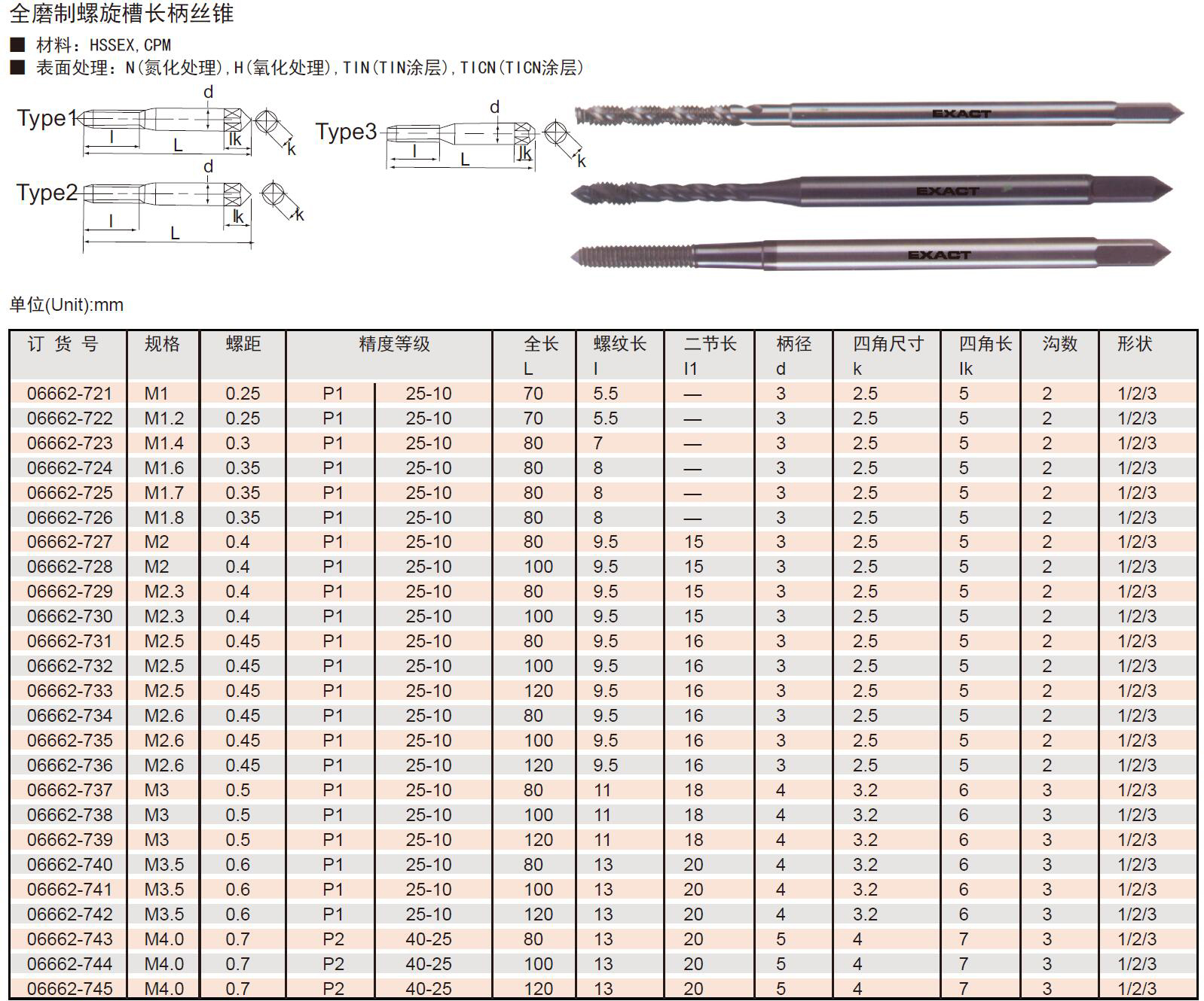 刀具 > 孔加工刀具 > 螺纹刀具 > 全磨制螺旋槽长柄丝锥