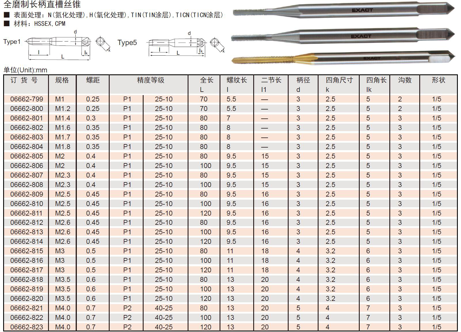刀具 > 孔加工刀具 > 螺纹刀具 > 全磨制长柄直槽丝锥