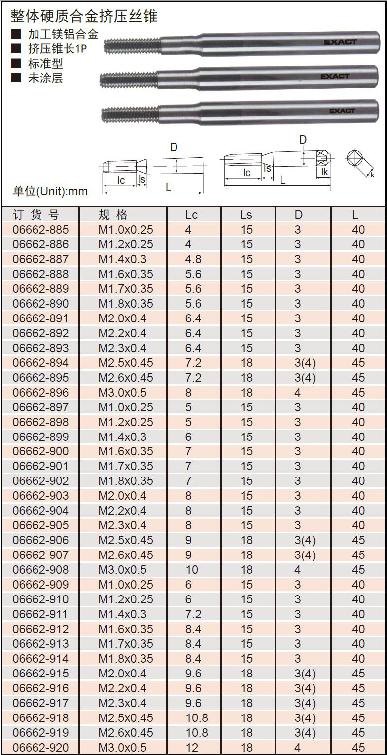 刀具 > 孔加工刀具 > 螺纹刀具 > 整体硬质合金挤压丝锥