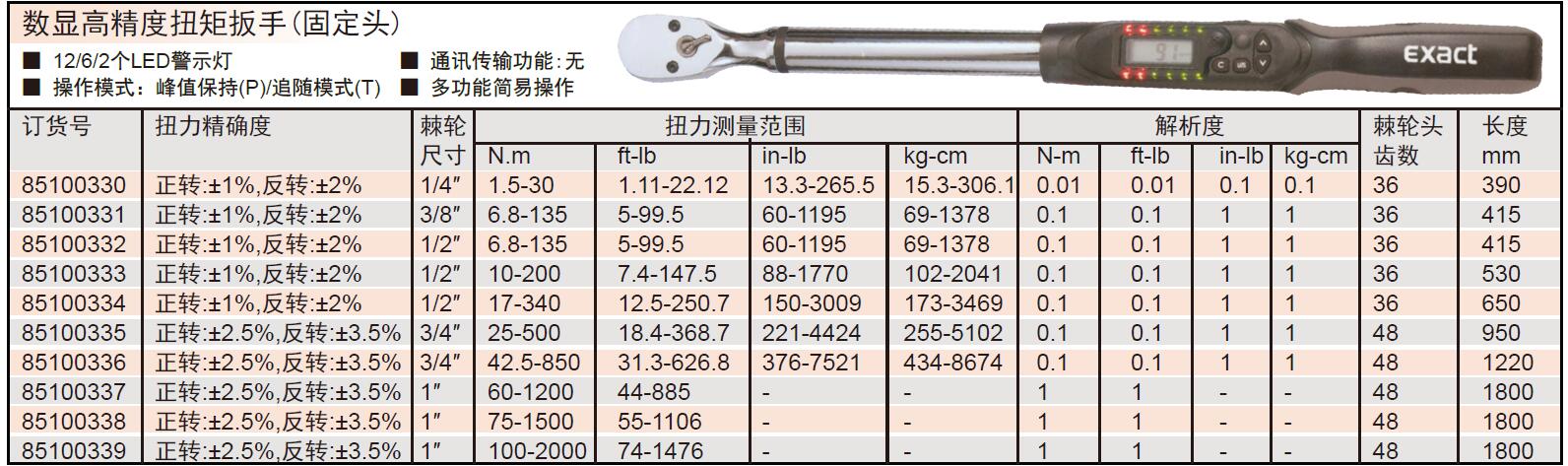 工具 > 扭力工具 > 数显式扭力扳手 > 数显高精度扭矩扳手(固定头)