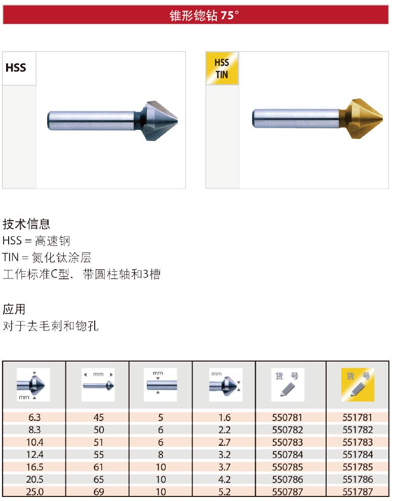 刀具 > 孔加工刀具 > 锪钻 > 锥形锪钻75°