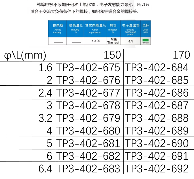 焊接 > 弧焊设备配件 > 磨光钨棒 > 氩弧焊用钨电极