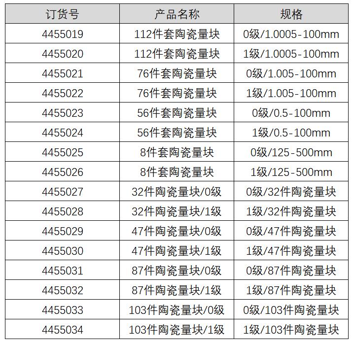 规格0级/47件陶瓷量块 型号4455029