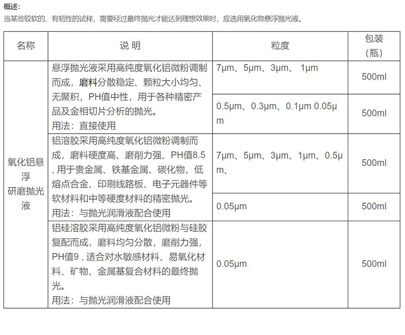 工具耗材 > 抛光耗材 > 抛光液/膏 > 氧化铝悬浮研磨抛光液