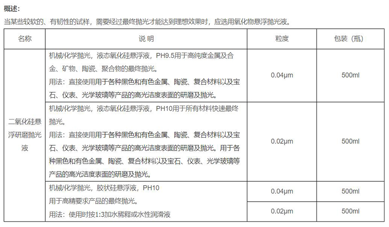 工具耗材 > 抛光耗材 > 抛光液/膏 > 二氧化硅悬浮研磨抛光液