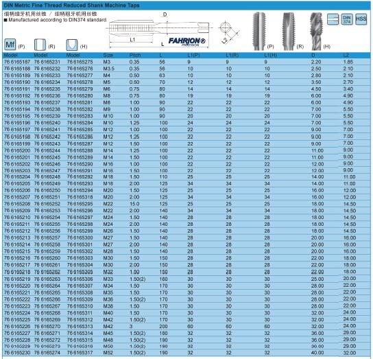 • 细柄细牙机用丝锥/细柄粗牙机用丝锥