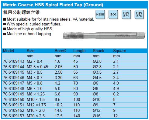 刀具 > 孔加工刀具 > 螺纹刀具 > 机用公制螺纹丝锥
