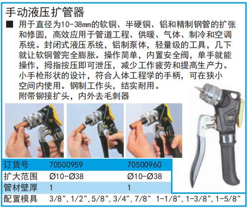 工具 > 管道工具 > 扩管器 > 手动液压扩管器