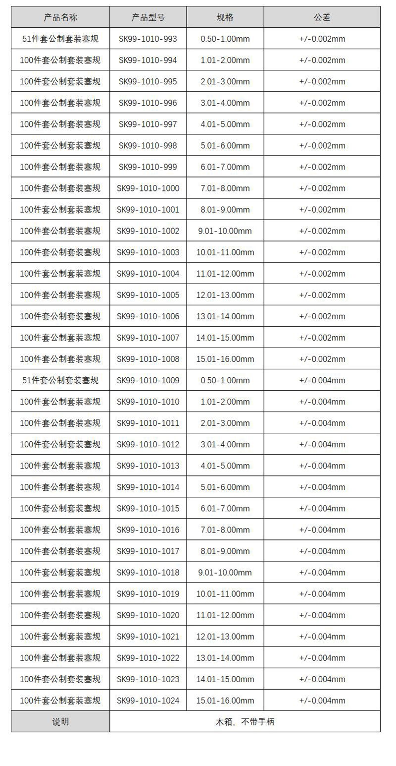 量具 > 测量量具辅件 > 量具套装 > 100件套公制套装塞规