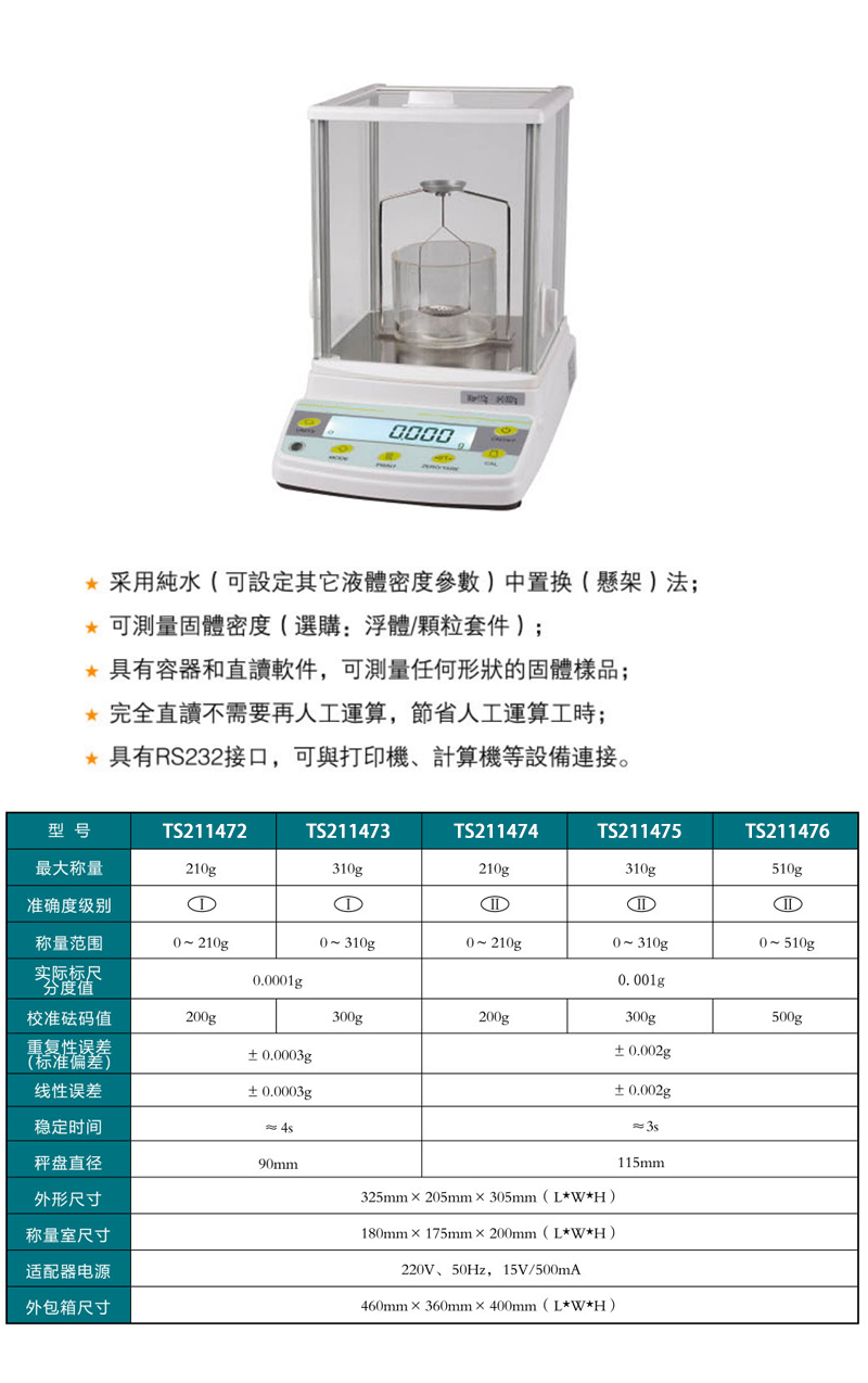 规格最大称量210g 型号TS211474