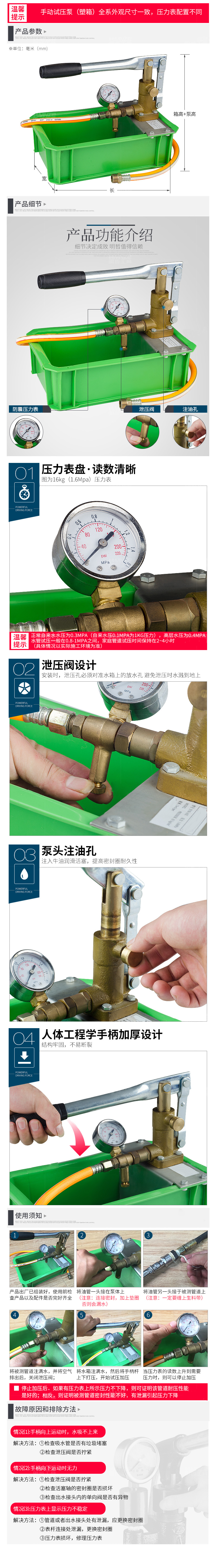 手动试压泵打压机25KG试压泵PPR水管管道测试