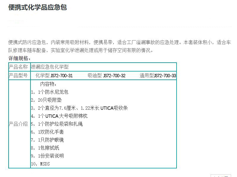 清洁 > 清洁用品 > 泄露应急处理套件 > 便携式化学品应急包(通用型)