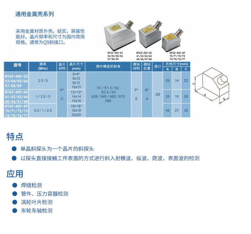 • 耐默特/NXMET 通用金属壳单晶斜探头 NT63-400-62