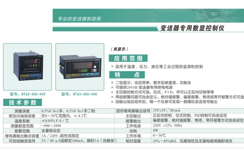• 耐默特/NXMET 变送器专用数显控制仪 NT63-400-440