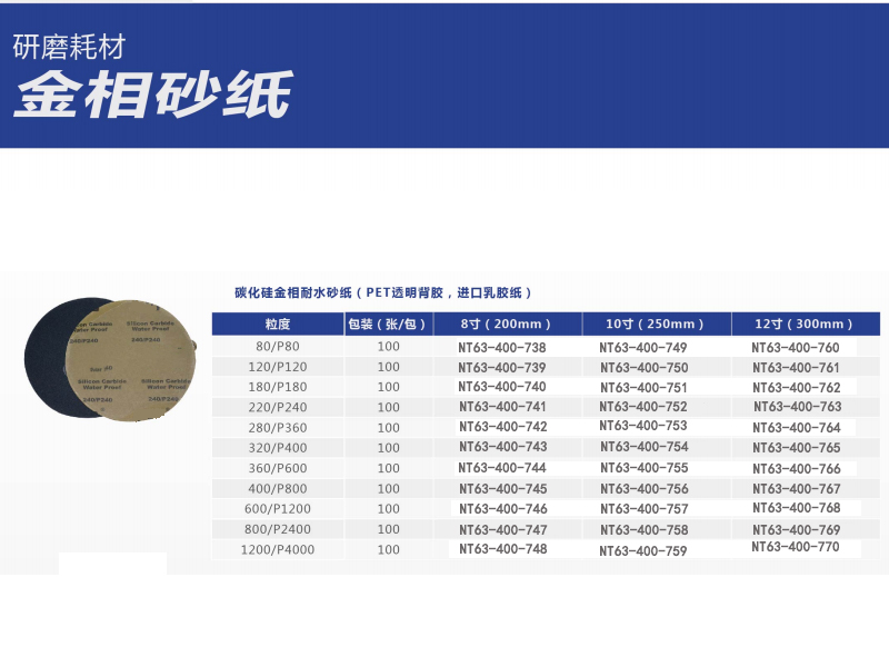 工具耗材 > 砂纸打磨耗材 > 砂纸 > 耐默特/NXMET 碳化硅金相耐水砂纸 PET透明背胶进口乳胶纸 NT63-400-741