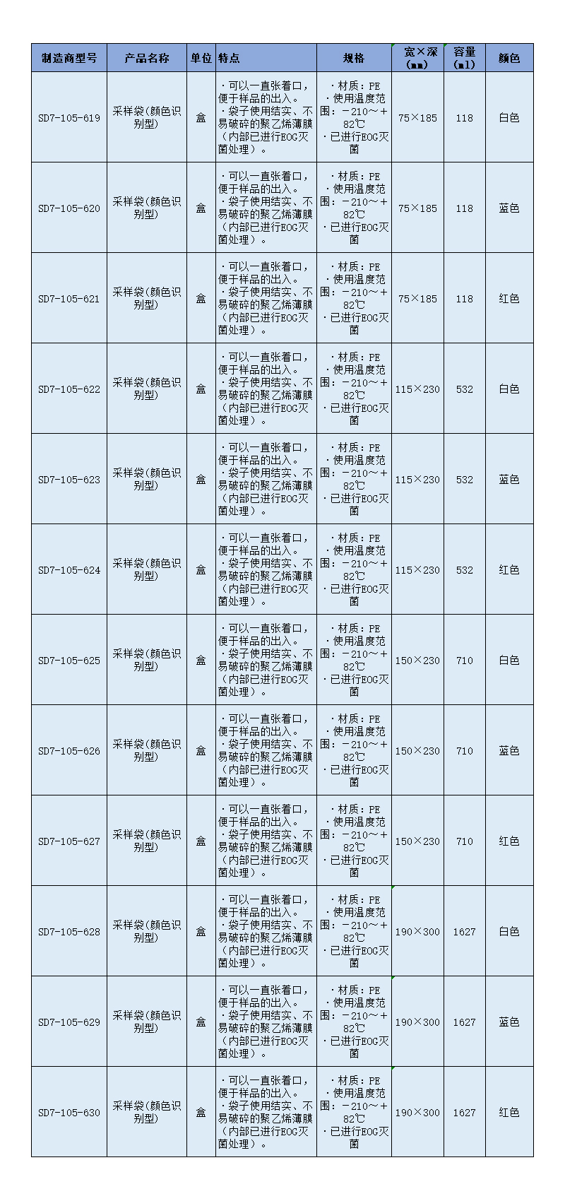 实验室产品 > 通用设备 > 灭菌器 > SLAMED 采样袋(颜色识别型) B01297 RT SD7-105-627