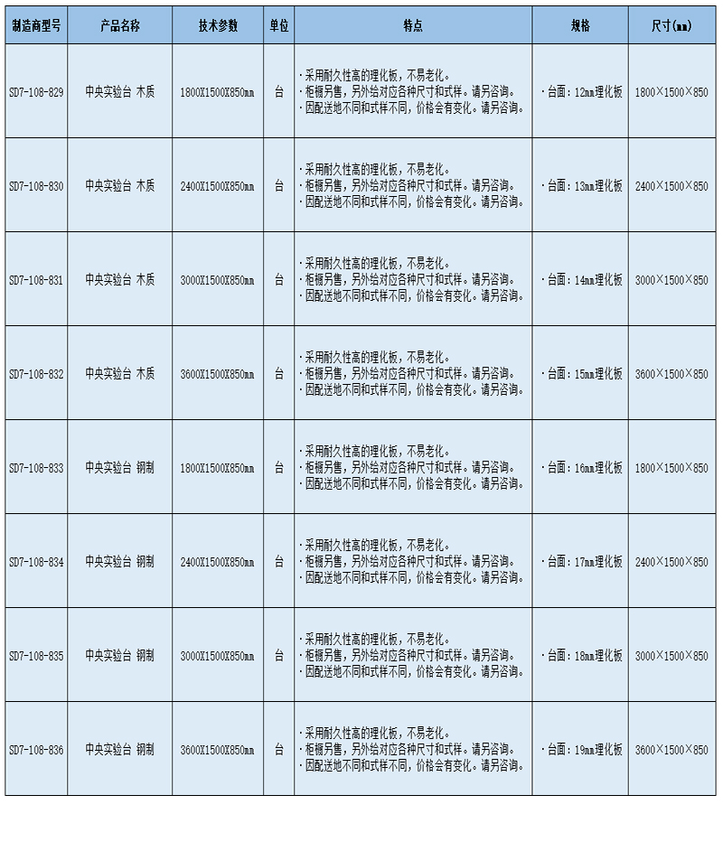 SLAMED 中央实验台 钢制 2400X1500X850mm