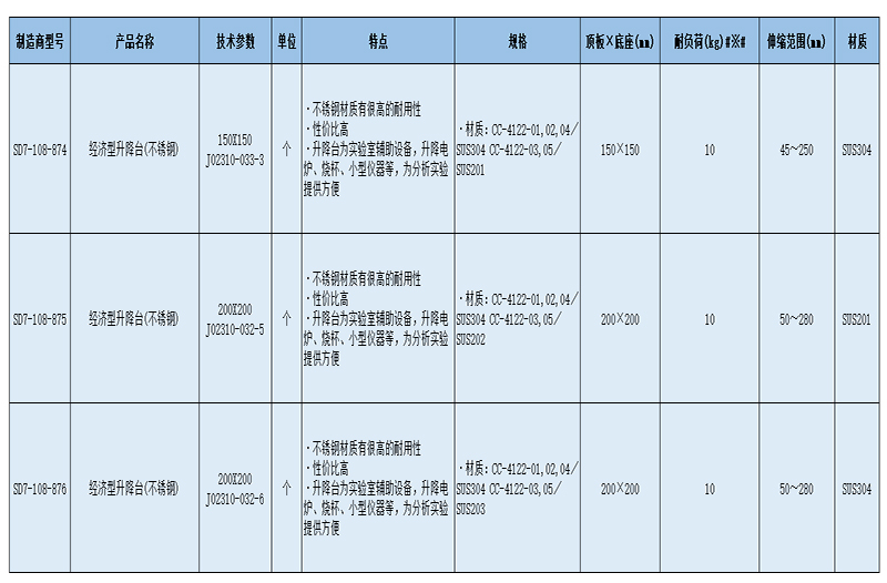 实验室产品 > 实验室通用耗材 > 升降台 > SLAMED 经济型升降台(不锈钢) 150X150 J02310-033-3