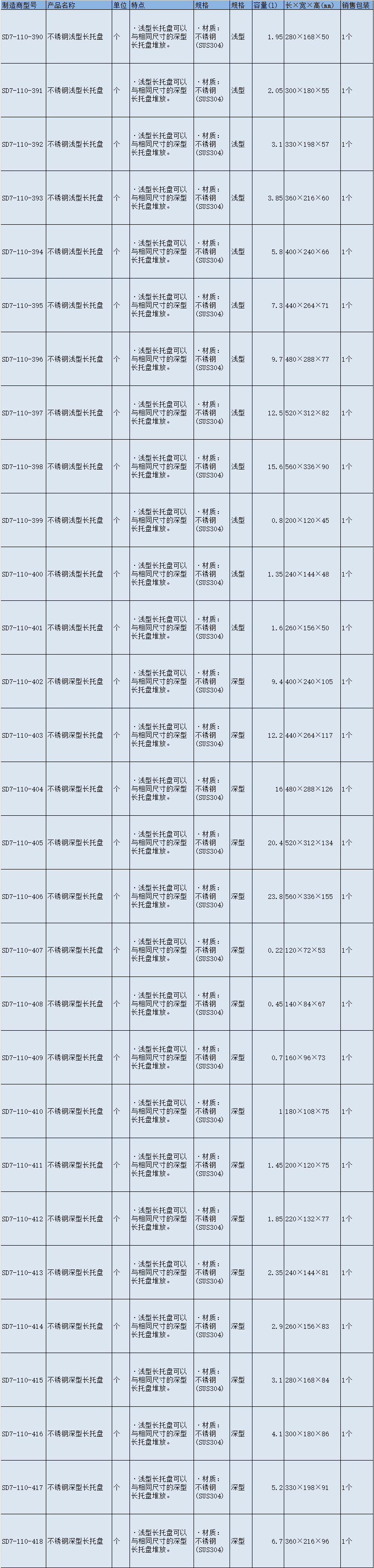存储 > 工业托盘 > 托盘 > SLAMED 不锈钢浅型长托盘 5号 SD7-110-394